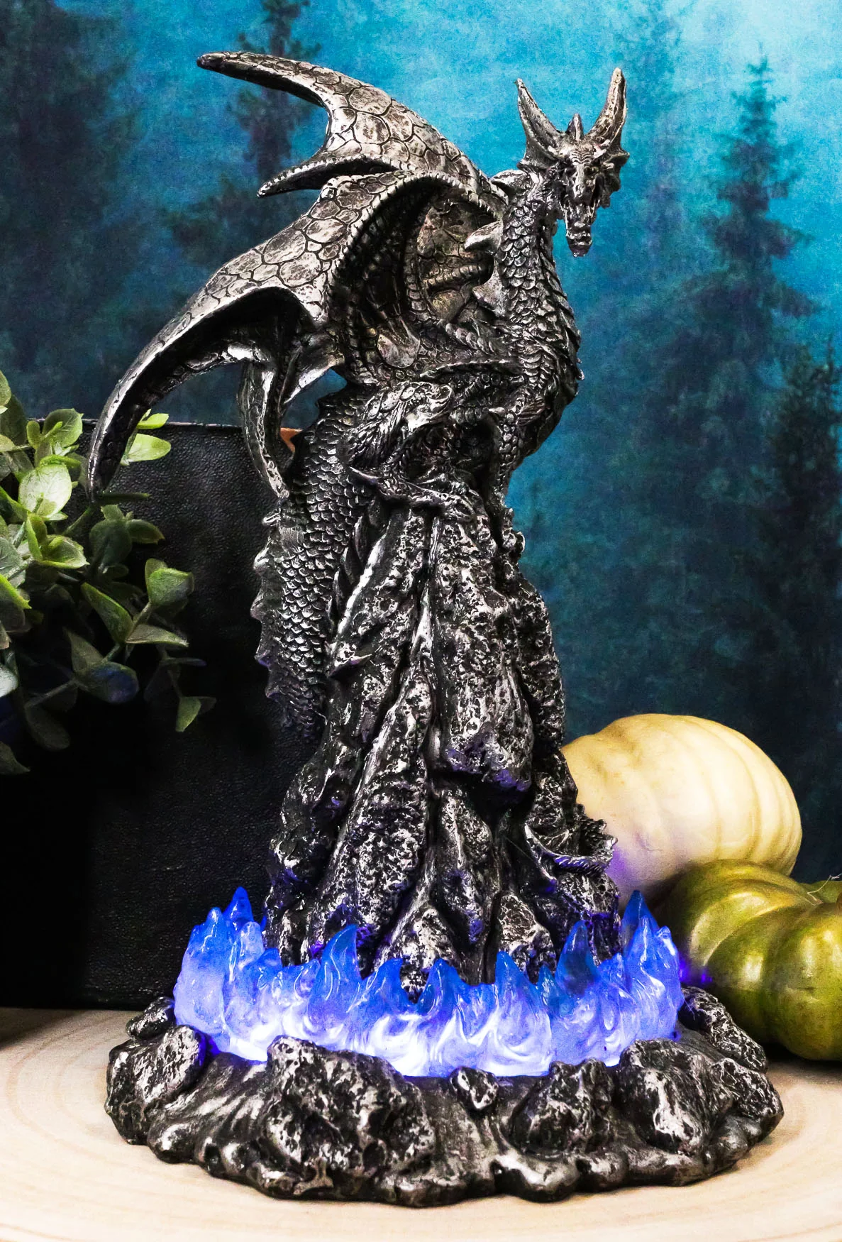 Ebros 10"H Volcano Blue Magma Dragon On Rock Tower Figurine with LED Night Light