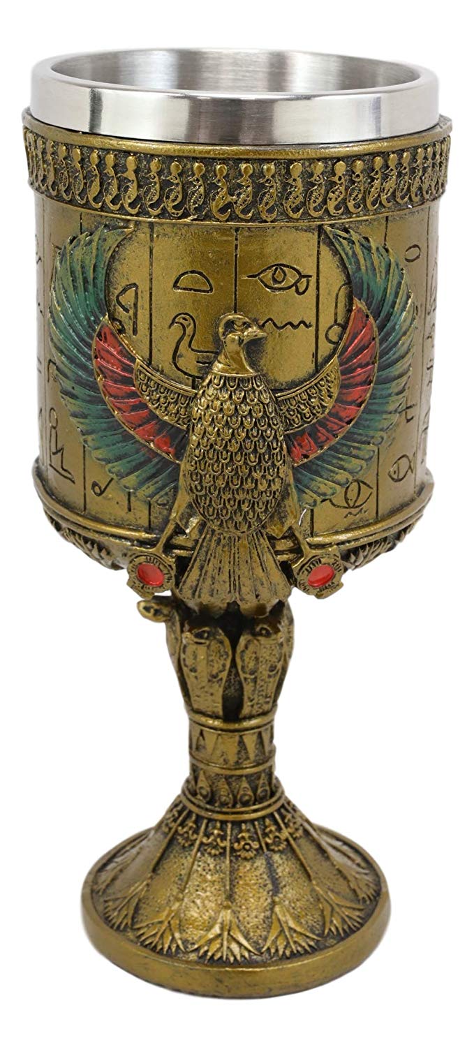Ebros Ancient Egyptian Horus Falcon Larger 16oz Cylindrical Wine Goblet Chalice