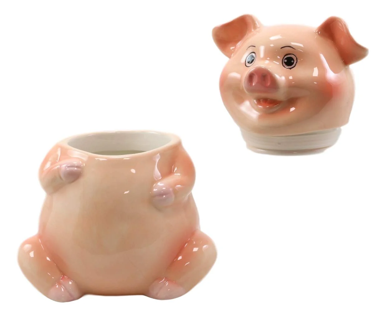 • Get rid of your mundane cookie jar and replace it with this Piggy Jar! He is beautifully sculpted and designed to look like your favorite whimsical animal farm pig. This smiley pig with blush cheeks loves hot freshly baked cookies and his big belly shows it!