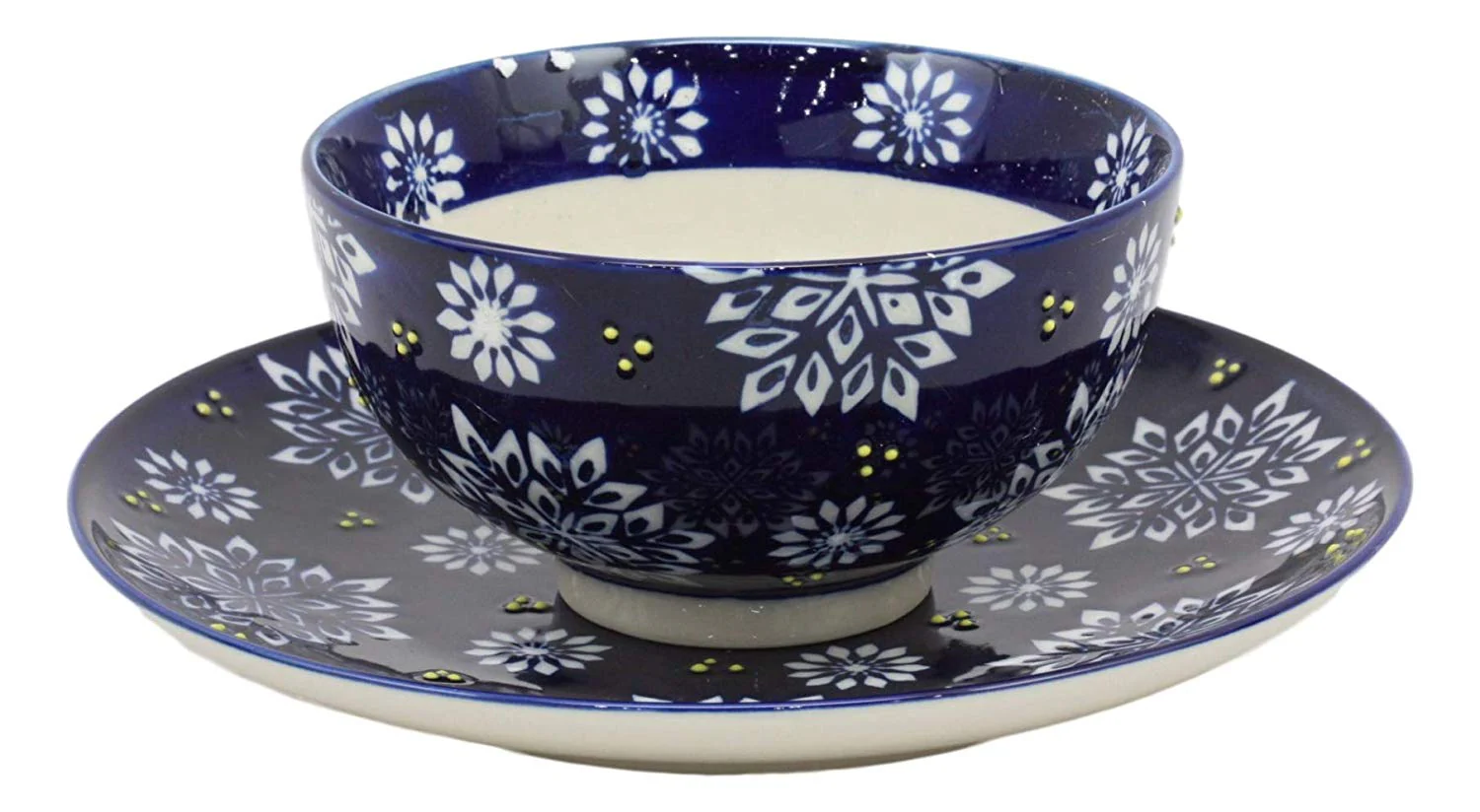 Ebros Blue Frozen Flakes Contemporary Designer Ceramic Dinnerware Bowl Mug Plate Set—