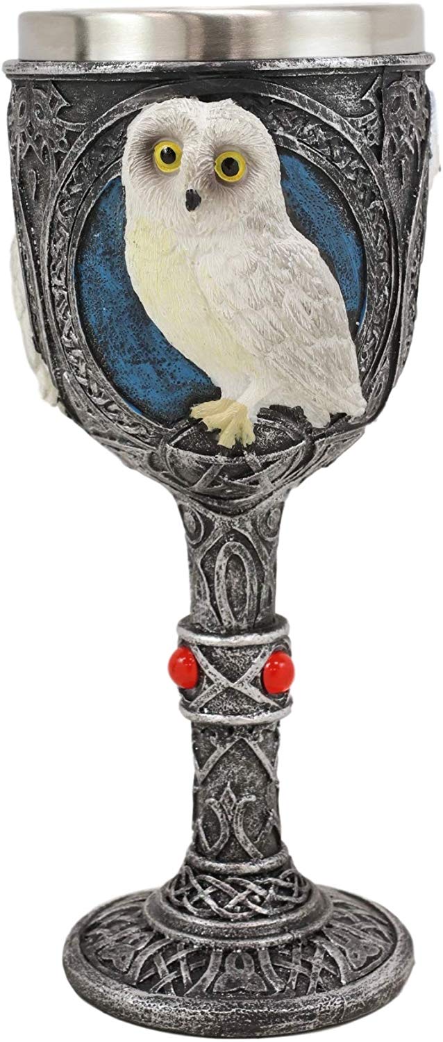 Ebros Dazed Snow White Owl With Celtic Tribal Tattoo Wine Goblet Chalice 7.25"H
