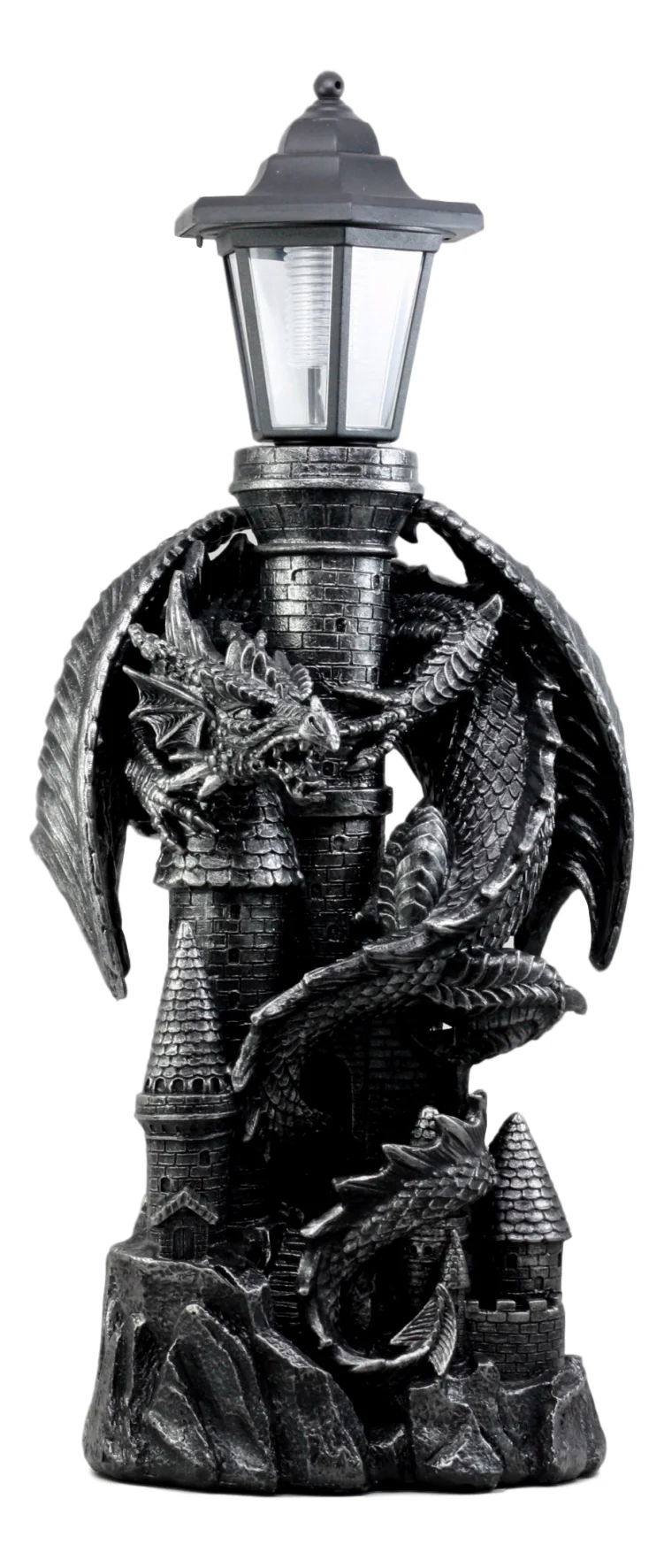 Ebros Mystical Rocky Top Castle Dungeon Guardian Dragon Solar LED Light Lantern Statue